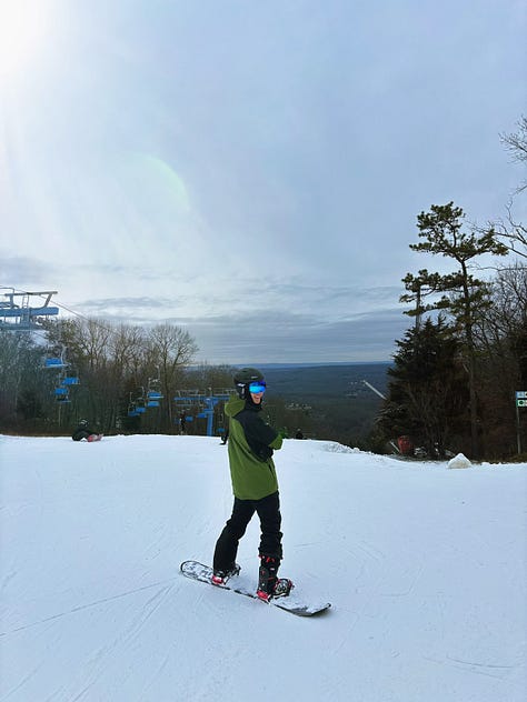 Any of my close friends know about my recent snowboarding obsession, an unfortunately expensive hobby I picked up two years ago. Understandably, it would be remiss not to discuss it in at least one letter. Winter also used to be my least favorite season. Besides Christmas and the occasional snow day, I never looked forward to the short daylight hours and blistering winds. But snowboarding has given me a great reason to properly enjoy all the seasons now.