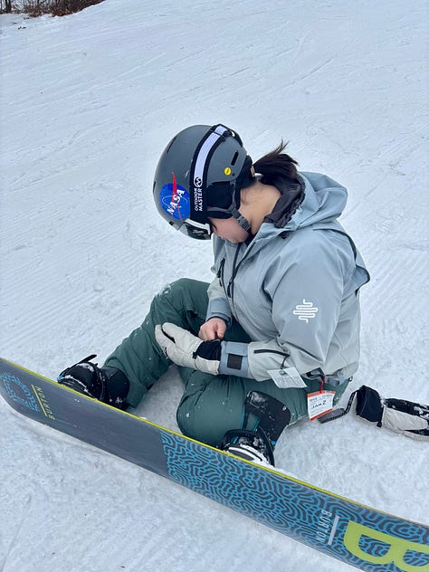 Undeterred the following year, I came to love the sport, from the physical challenge of turning on your toe edge, to the thrill of gaining speed, to the peace of surrounding myself with trees. While I envy those who could grow up doing snow sports, I revel this opportunity to learn later in life. Perhaps I feel particularly connected to snowboarding because of the freedom it offers, both in the independence of traveling to the mountain and physicality of the sport itself.